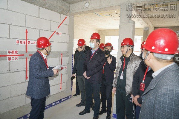 當天上午,G50一行首先參觀了龍信房地產海門駿園項目,在龍信房地產總建筑師史惠強的引領下,主要對精裝減樣板、土建工藝樣板、土建移交精裝樣板間的工藝工法進行了觀摩。項目人員向大家介紹了二結構、煙道、衛生間、外窗后裝法、外墻螺桿洞封堵、陽臺門檻綜合防滲漏節點等一系列做法,向G50一行展示了龍信產品在防滲漏、防開裂、防空鼓、環保材料、龍信特有工藝等多方面的優勢。