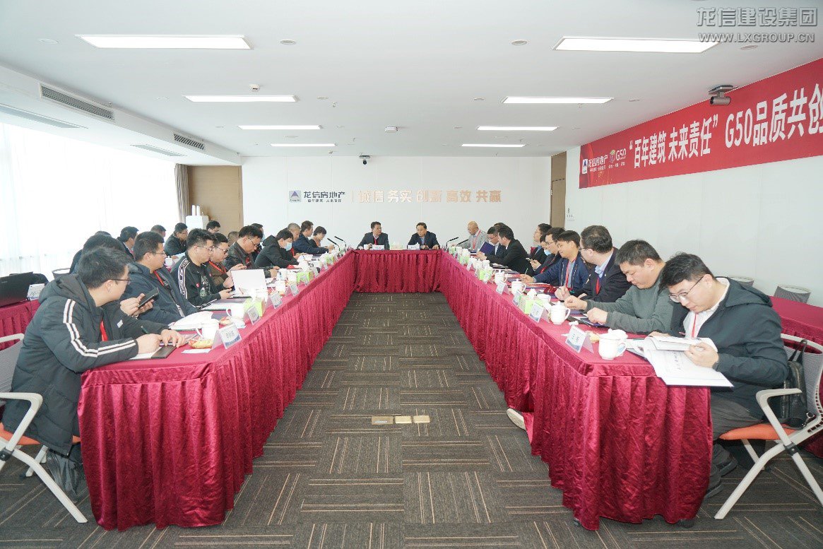 2022年2月27日,G50董事長俱樂部攜會員企業昌建集團、壯業集團、宏宇集團、百蕊集團等企業蒞臨龍信,就品質共創開展系列交流活動。龍信房地產總經理張紅星等領導熱情接待G50嘉賓一行并展開座談。