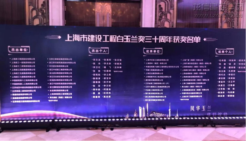 龍信集團榮獲“上海市建設工程白玉蘭獎杰出單位”稱號
